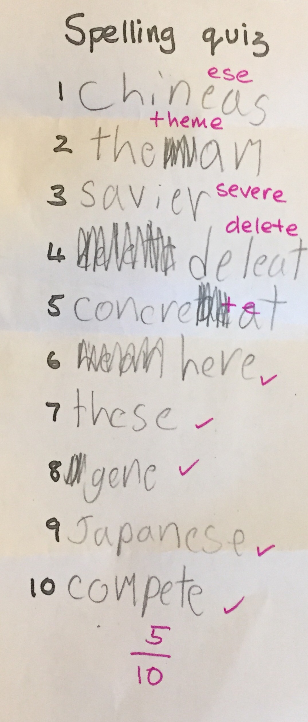 The 1st-grader has aced her spelling quizzes, until this one. She says it’s because we’ve been overly focused on the 4th-grader’s learning, and ignoring hers. I say that’s a hard test for a 1st-grader! Still, point taken.