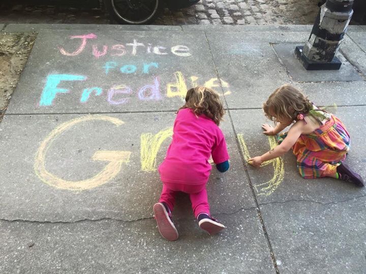 The sidewalk chalk came out after classes ended early when, four years ago today, the protest march passed their school. We talked about what was going on. I told them no one could reasonably disagree with this statement about a man’s unexplained death in police custody, because the number-one job for police is to keep people safe.