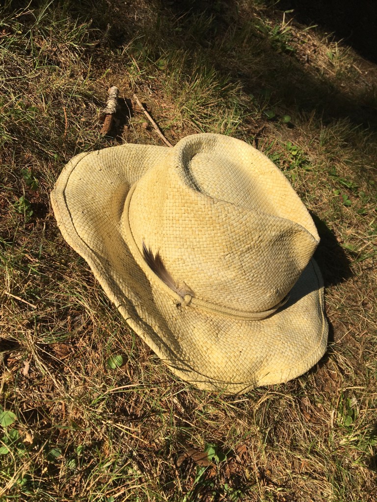 I stayed perfectly still. We were on a collision course, the feather and I. Closer, closer, I reach down and grasp it between my thumb and forefinger. Now it’s affixed to my beach hat, a gift from a loon.