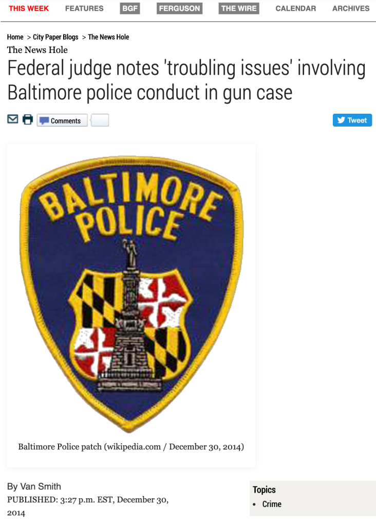 U.S. District Judge Catherine Blake ruled in the government’s favor in a gun case today, allowing a gun to be used as evidence in the case of Arthur Jeter, who’s charged with being a felon in possession of a firearm. But Blake noted “troubling issues” involving the conduct of Baltimore police officers who seized the gun from Jeter.