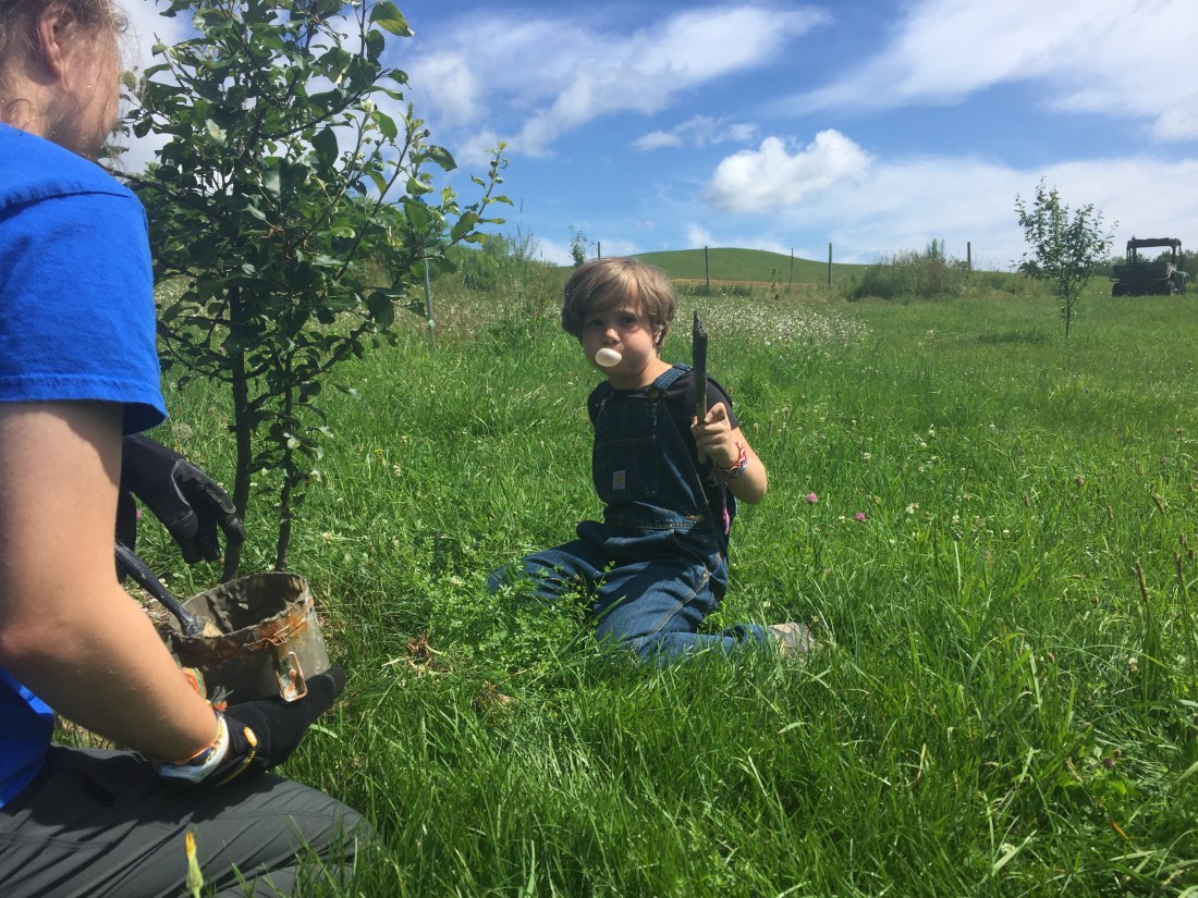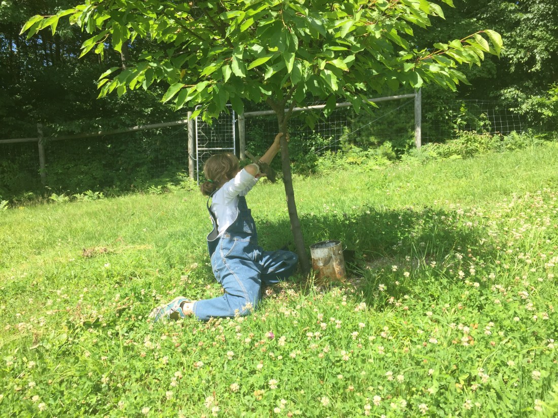Biodynamic pest control and bark strengthening at the New Day Farm’s orchard in Ira, VT.
